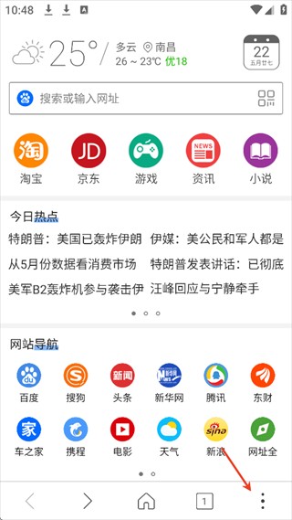 1、在本站下载安装高速浏览器旧版本app,打开软件点击右下角的三个点