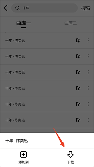 2、搜索时可以通过音乐名字将歌曲搜索出来,搜索出来后点击旁边的功能图标