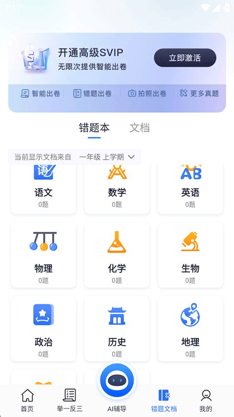 3、选择您所在的地区、年级/学期、学科等,点击立即出卷(该项功能需要开通SVIP);
