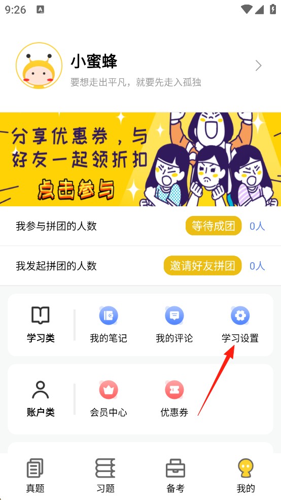 1、在本站下载安装蜜题考研政治app,打开进入app点击【我的】