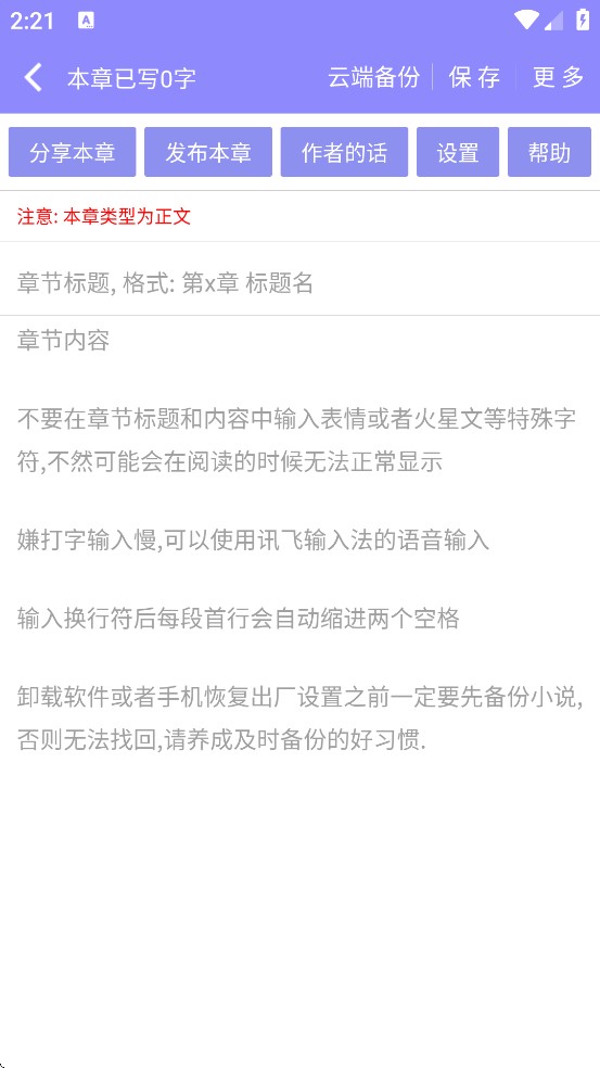 1、支持云端备份和恢复到本地,多重机制保护数据安全,不用担心小说丢失,更支持手机和电脑同步写作。