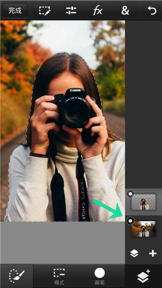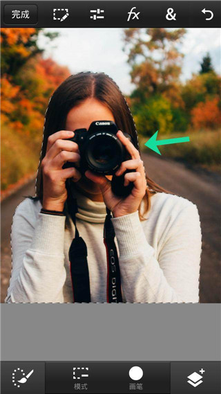 3、可以双指缩放照片,选用合适的笔刷大小,增加和减少选取,尽量精确选择选区。