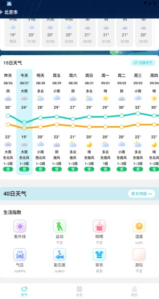 3、最多支持查看十五天的天气状况,温度、紫外线和风速轻松查看;