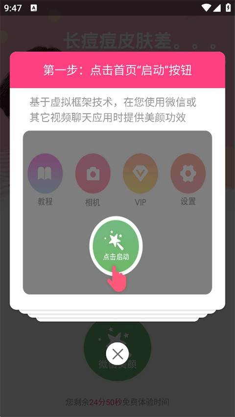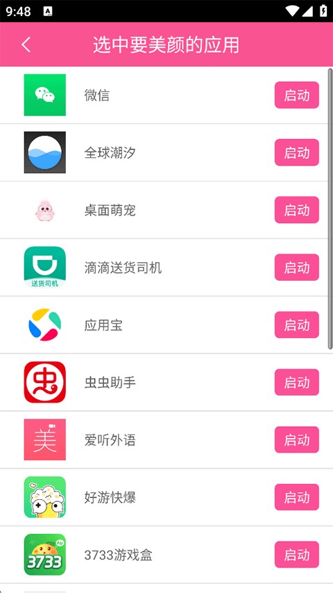 1、在本站下载安装微微视频美颜助手app并打开,点击首页的启动按钮;