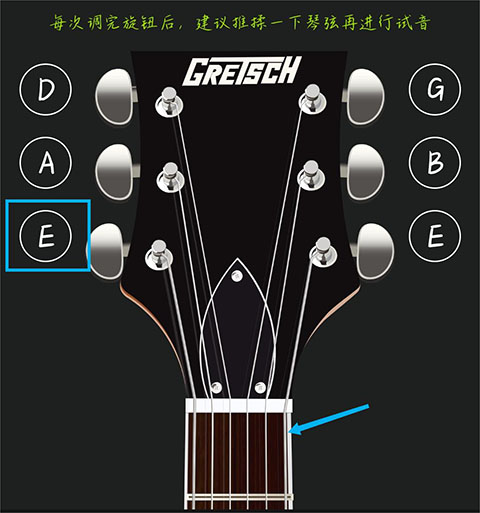 琴头有6个旋钮,每个旋钮对应一根琴弦,您可以通过左右旋转来调节对应琴弦的音高,建议从最粗的开始调。