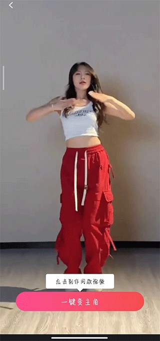 3、找到模板后并点击即可观看模板全部内容,点击一键变主角即可制作同款视频