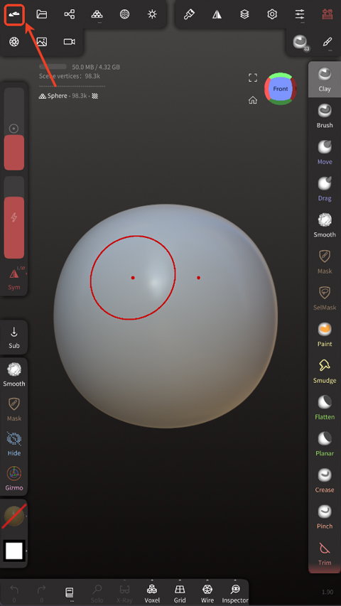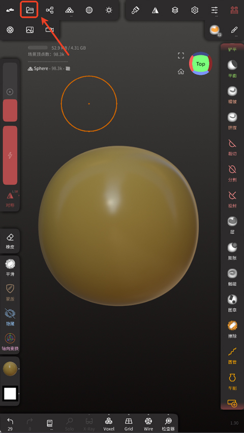 1、在本站下载安装Nomad Sculpt建模app并打开,进入应用后,点击左上角按钮;