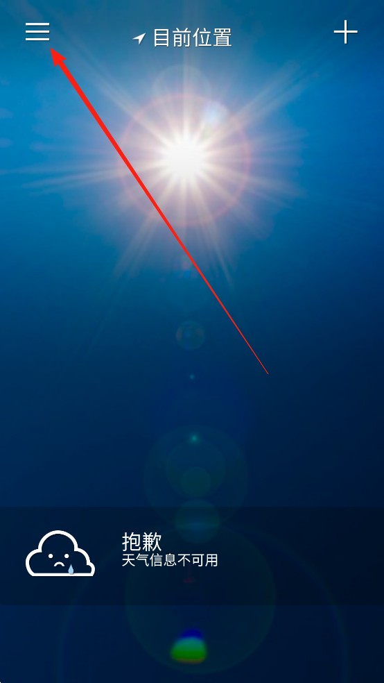 1、在本站下载安装yahoo天气app并打开,点击左上角功能菜单