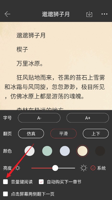 4、在设置中开启【音量键翻页】功能,之后即可通过音量键轻松翻页,无需滑动屏幕。