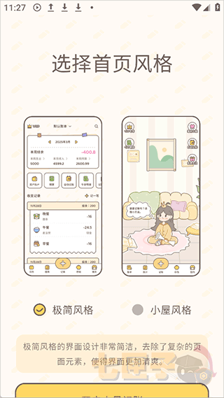 1、在本站下载安装小贝记账app,打开app后选择一种自己喜欢的风格来开启小贝记账