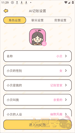 4、其中AI记账可以设置AI角色来充当你的记账管家