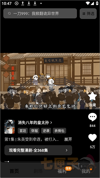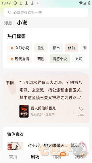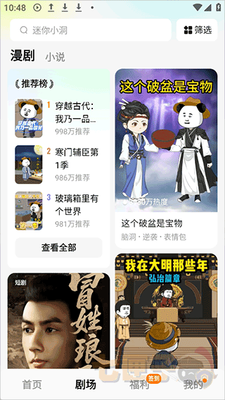 2、剧场界面中会有漫剧和小说两个入口,其中漫剧中有海量好看搞笑的沙雕漫画短剧