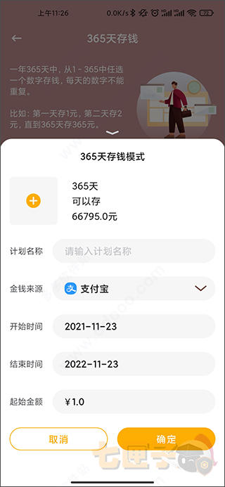 1、存钱模式:根据存钱需求自由选择存钱模式,自动生成每天要存入的金额