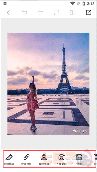 3、在照片下方有【删除物体】、【快速修复】等功能,在这里我们选择【删除物体】;