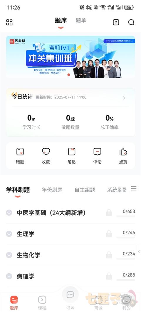 2、进入“题库”,在这里你可以根据学科刷题、年份刷题或是系统刷题来挑选适合自己的刷题内容