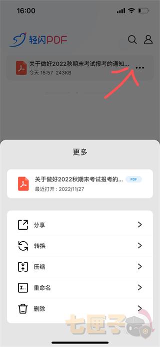 2、点击三个小点可以将你的文件进行压缩、分享、转换等。
