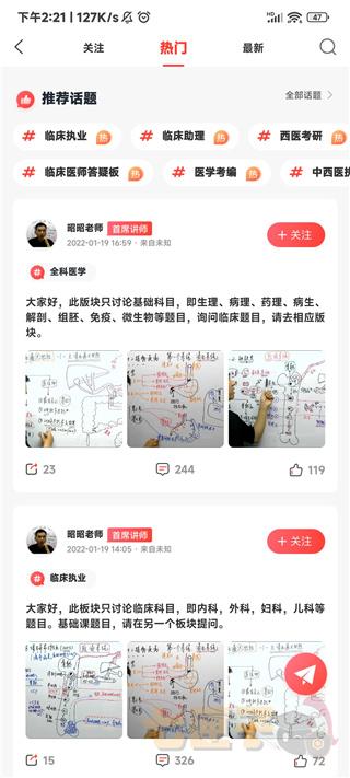 4、我们来看看医考圈,这里能够看到昭昭老师本人以及其他同学发布的动态;