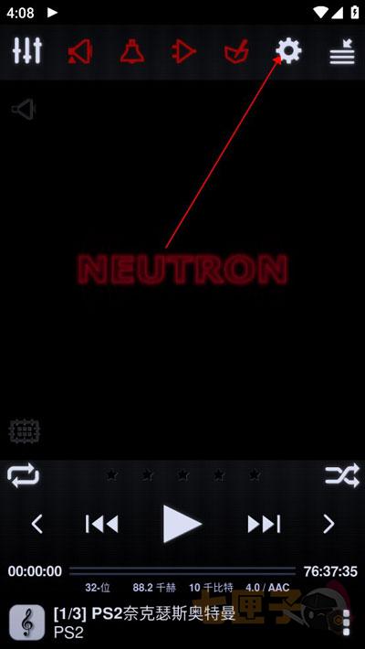 1、在本站下载安装中子音乐播放器app,打开进入app之后点击右上角的设置选项。