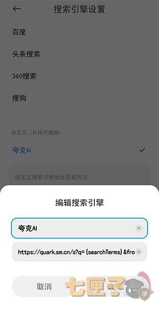 2、支持自定义搜索引擎,比如可以自定义夸克的搜索引擎,夸克AI还是不错的;