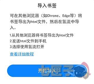 3、此外,软件支持在其他浏览器(如Chrome、Edge等)将书签导出为html文件,然后在氢流中导入;