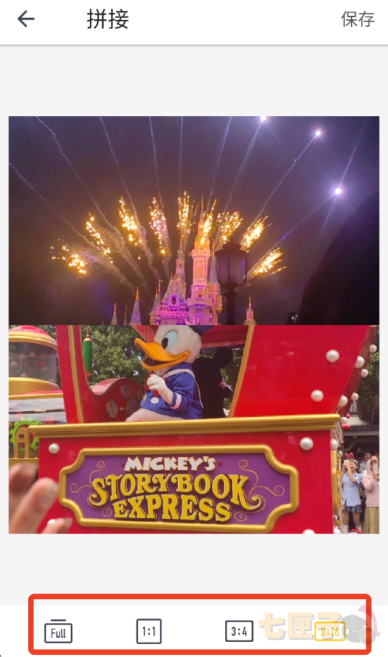 4、默认是上下拼接,下面可以调整拼图的尺寸。