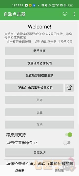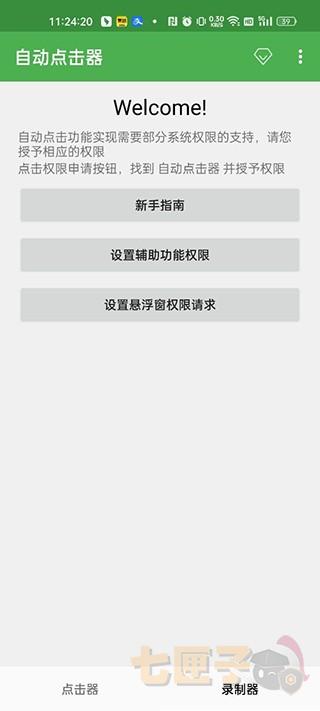 1、在本站下载安装一秒3000连点器app并打开,点击开始启动,会弹出窗口需要授权;