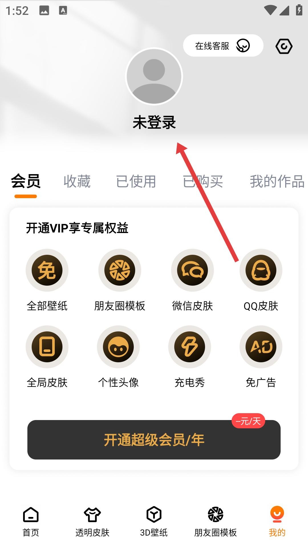 3、从同意协议,到个人中心,点登录,管理收藏作品,查看已购壁纸,开通会员,解锁更多权益。