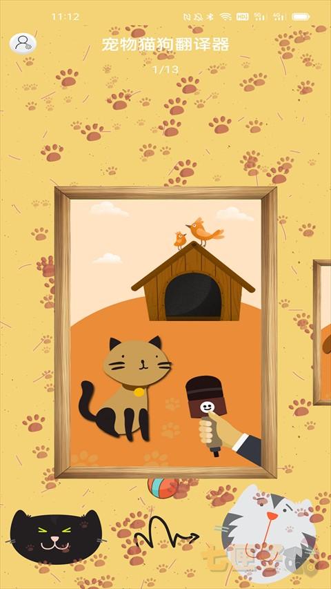 1、在本站下载安装宠物猫狗翻译器app并打开,用户界面温馨美观,功能强大;