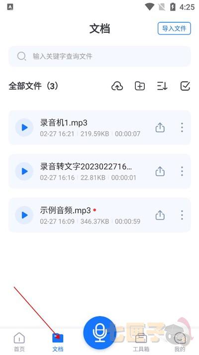 1、在本站下载安装语音翻译王在线翻译app并打开,点击底部文档