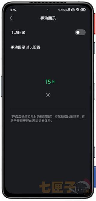 2、手动回录功能:一键保存任意游戏片段,可自定义15秒至60秒的录制时长。