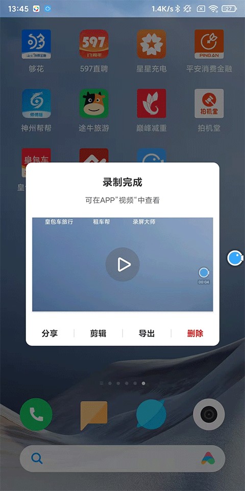 1、悬浮窗、通知栏、摇一摇多种方式控制录屏开始/结束