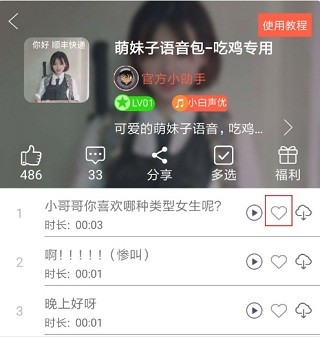 1、在本站下载安装金胜变声器app并打开,在各类语音包中选择需要的语音,点击爱心进行收藏