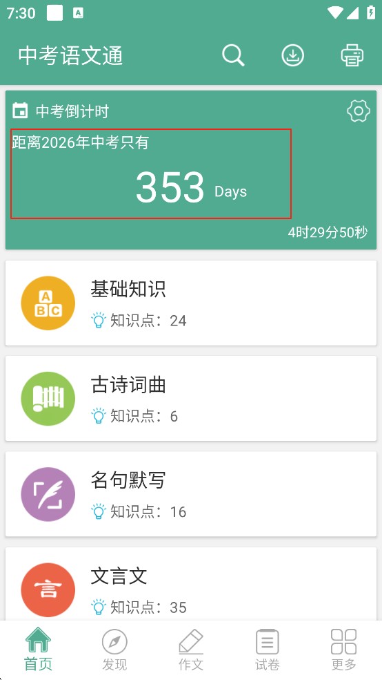 1、倒计时:首页中考倒计,时刻为你提醒距离中考还有多少天