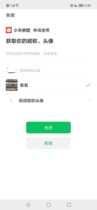 3、选择头像和昵称或者新建一个,点击允许即可完成登录。